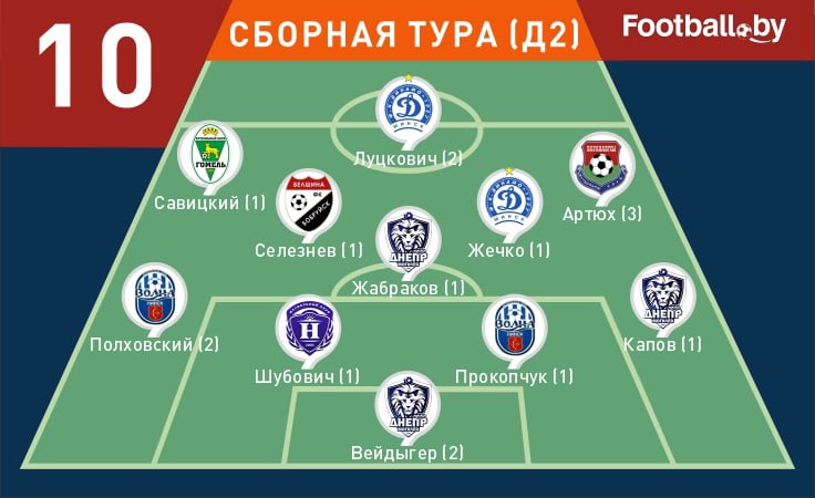 Согласно версии портала, в список одиннадцати лучших вошли двое пинчан — защитники Кирилл Полховский и Даниил Прокопчук, авторы голов в матче с «Осиповичами». Отметим, что для Полховского это уже второе попадание в сборную тура.